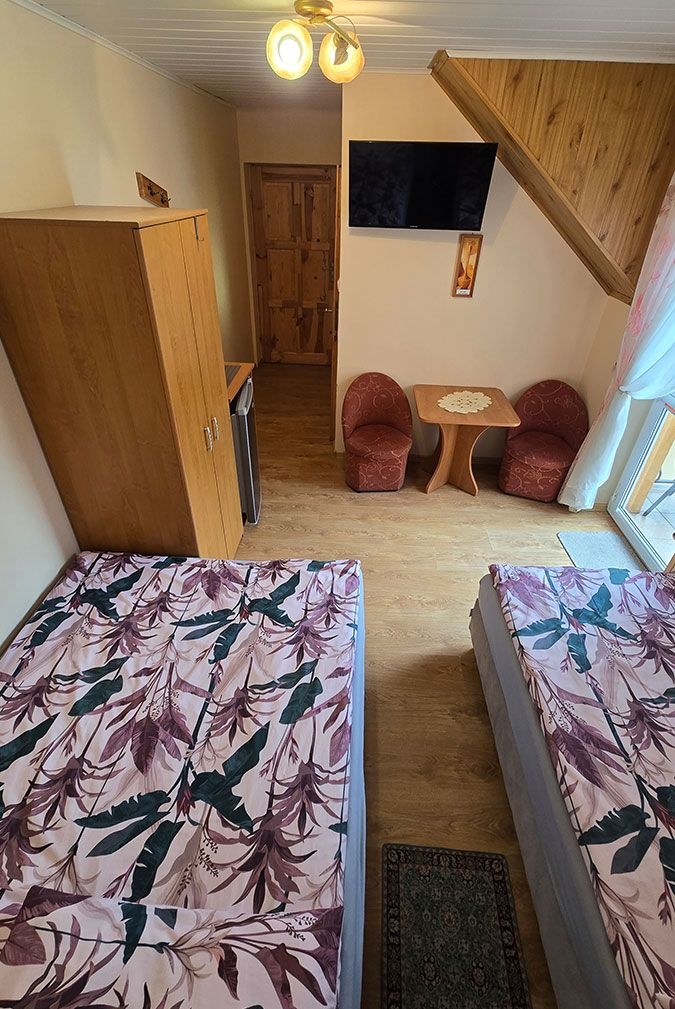 Oferujemy pokoje 2-,3-,4-osobowe z pełnym wyposażeniem sanitarnym i TV.